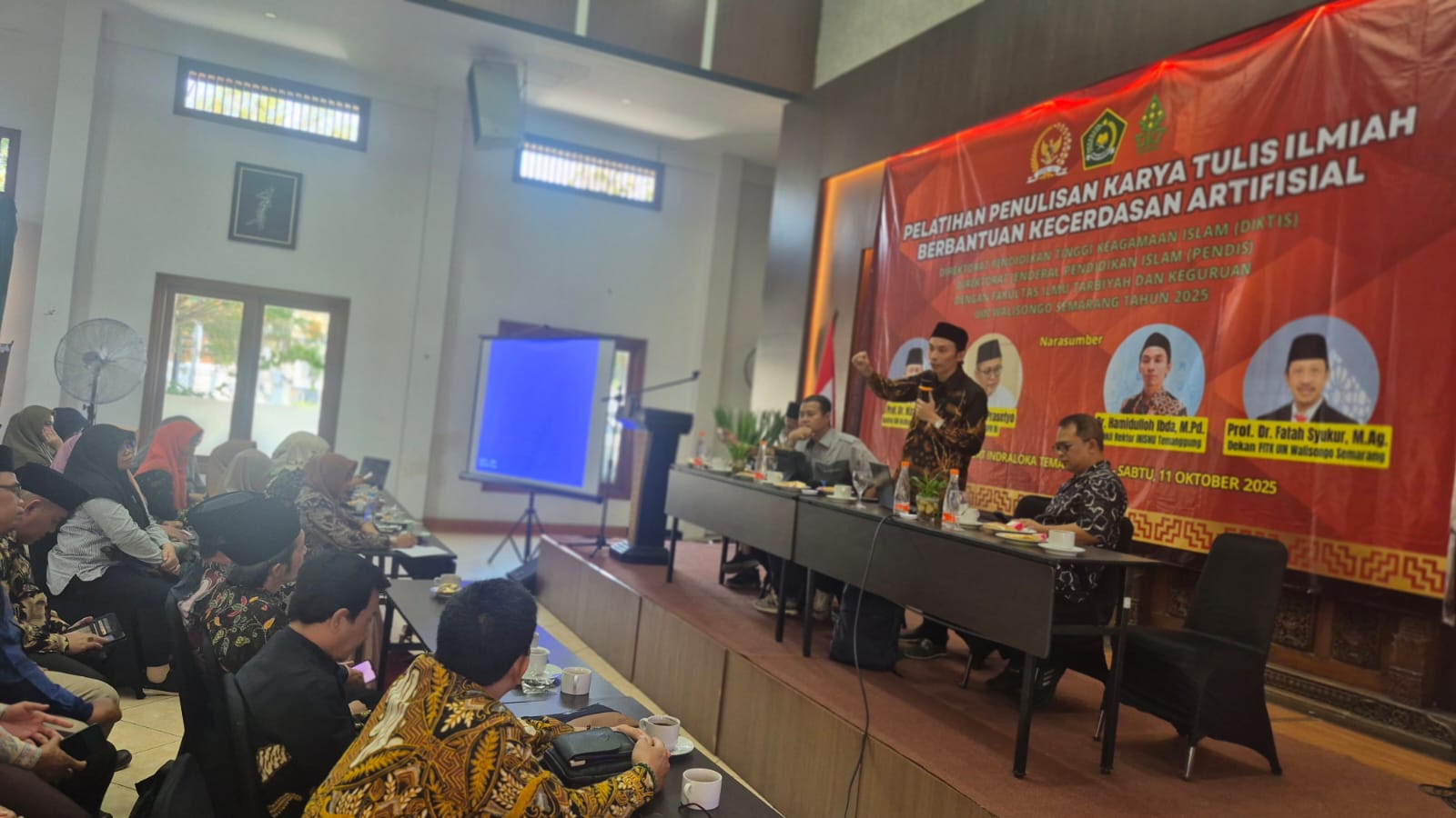 Temanggung, Kabartemanggung.com — Direktorat Pendidikan Tinggi Keagamaan Islam (Diktis), Direktorat Jenderal Pendidikan Islam Kementerian Agama RI bekerja sama dengan Fakultas Ilmu Tarbiyah dan Keguruan (FITK) UIN Walisongo Semarang menyelenggarakan Pelatihan Penulisan Karya Tulis Ilmiah berbantuan Kecerdasan Artifisial di Hotel Indraloka Temanggung, Sabtu (11/10/2025).