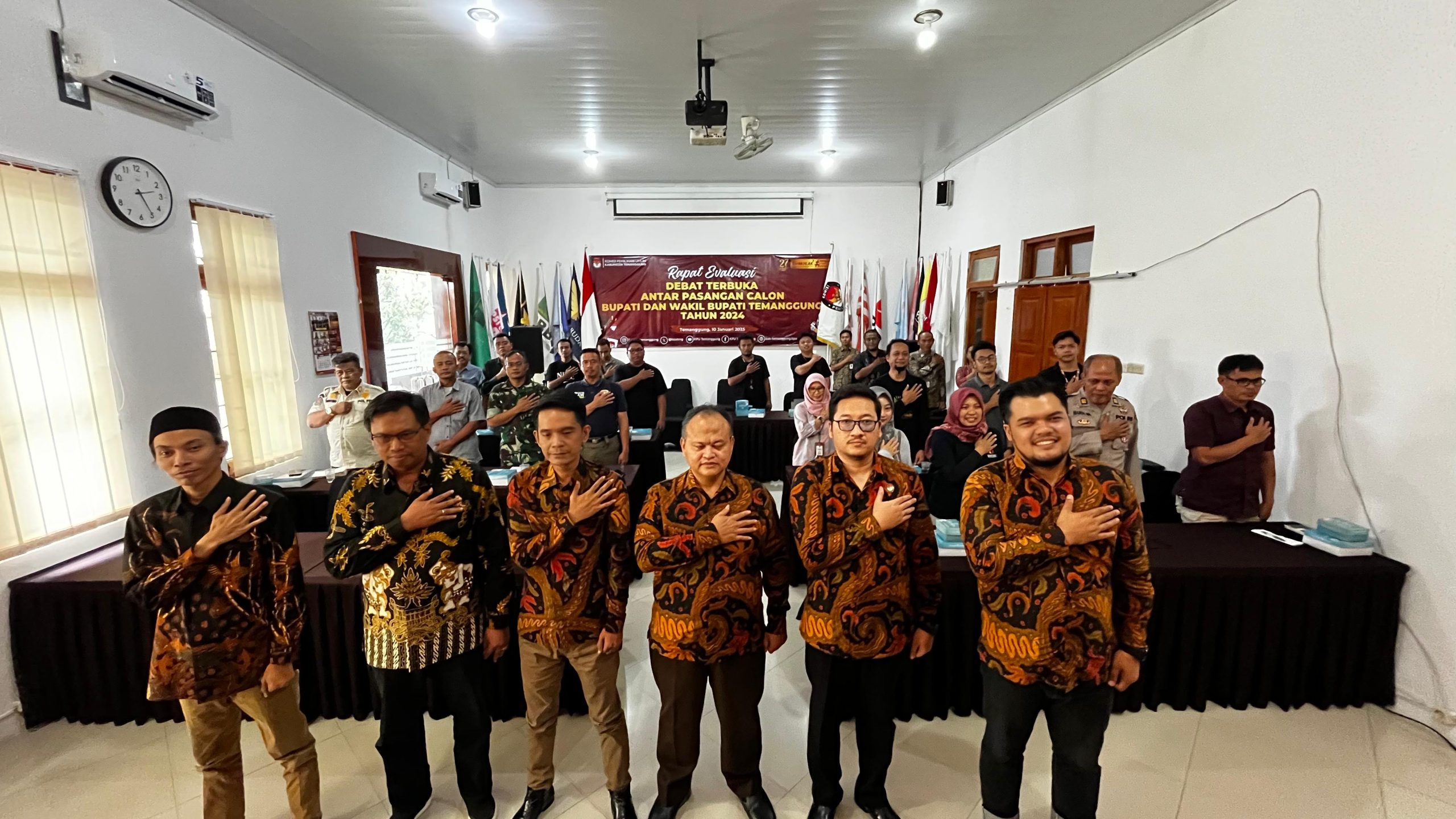 Ketua KPU Kabupaten Temanggung Henry Sofyan Rais dalam arahannya mengatakan banyak terima kasih kepada semua pihak yang telah menyukseskan semua rangkaian kegiatan Pilkada Temanggung utamanya Debat Publik Pasangan Calon Bupati dan Wakil Bupati Temanggung Tahun 2024. “Alhamdulillah tidak ada kejadian yang tidak diinginkan, tentu ini juga atas peran Kepolisian, TNI, Satpol PP dan semua pihak,” katanya.
