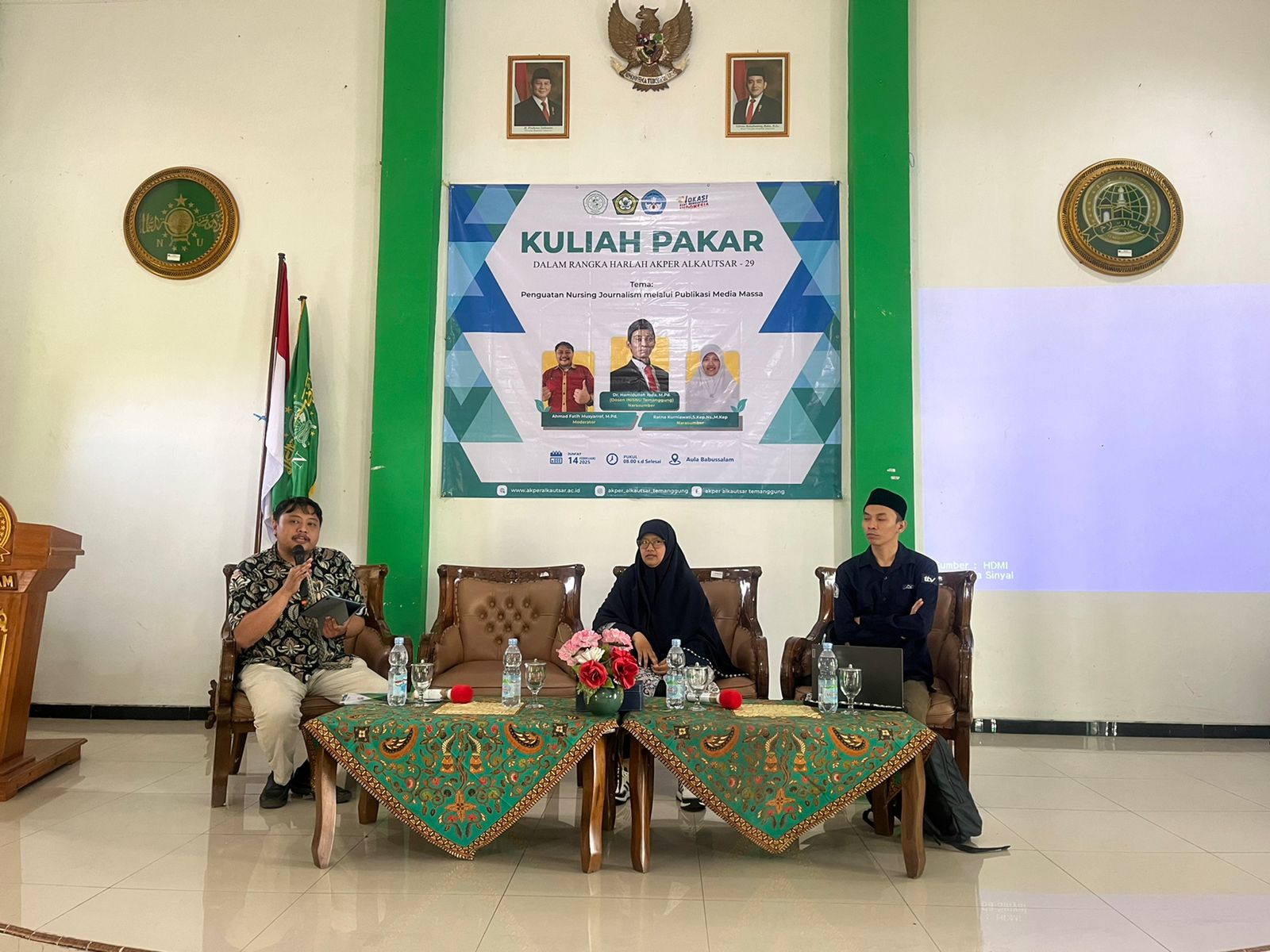 Selain Direktur AKPER Alkautsar, sebelumnya acara diisi oleh narasumber lain dosen AKPER Alkautsar Ratna Kurniawati, S.Kep., Ns., M.Kep, moderator Ahmad Fatih Musyarrof, M.Pd., dan mahasiswa sebagai peserta kuliah pakar. Usai kegiatan, mahasiswa dikawal untuk melaksanakan rillis kegiatan tentang praktik keperawatan, dan semua kegiatan AKPER Alkautsar yang perlu disebarluaskan di media massa. (KT33/HI)
