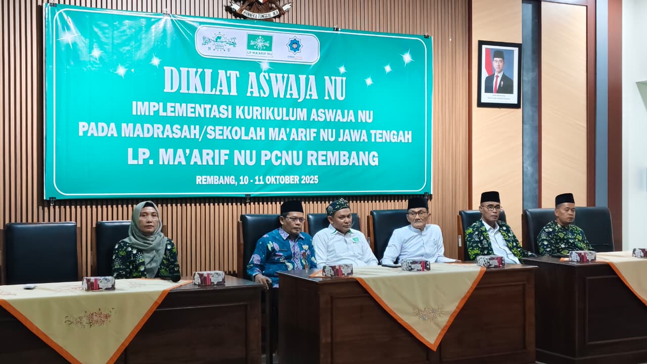 Rembang, Kabartemanggung.com – Lembaga Pendidikan Ma’arif NU PCNU Rembang mengawali Diklat Aswaja NU setelah mengalami penyesuaian kurikulum dan materi-materi Diklat yang lebih relevan untuk diterapkan dalam madrasah/sekolah Ma’arif NU di Jawa Tengah. Kegiatan dilaksanakan di Kantor Kementerian Agama Kab. Rembang pada Jum’at dan Sabtu (10-11/10/2025).